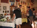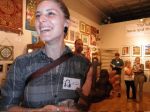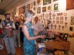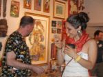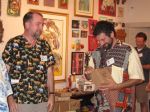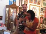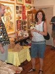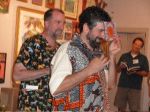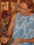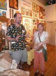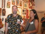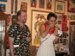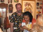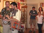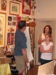 Here are some photos of my models receiving gifts at my book-signing/art show. Unfortunately you can't really see the paintings in the background.